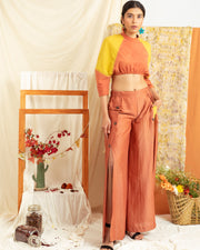 Batwing Sleeve Top and Flared Pant in Red and Yellow