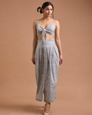 The dreamy allure of the cord set takes you on a theatrical journey where each piece showcases mesmerizing hand-block prints, bringing heritage techniques to life. The versatile top allows you to tie the knot in the front for the perfect shape. The skirt, with its high waist and beautiful shell buttons, exudes an undeniable elegance, adding a touch of sophistication to your look.