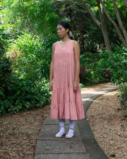 Tasty hues, flowy asymmetric gathers, and a gorgeous deep plunge neckline, this dress is the perfect companion for a brunch or picnic.