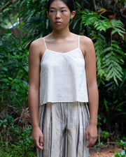 A pair of straight-fit handpainted striped trousers with pleats, elasticated back, side pockets, and mock fly detailing. Pair it up with any of our handpainted tops to upgrade it into a smart co-ord.