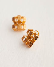 An exploration of the boldly original, the OH Poppi Bolt Stud earrings are a fulcrum between refined femininity and industrial modernity. The stacked silhouette of the OH Poppi Bold Stud earrings put the spotlight on the structure and celebrates shapes across dimensions. A closer peek reveals the signature monogram etched into every surface of the construction of this rare creation. A true embodiment of the vision at Outhouse. A minimalistic subtlety or a maximalist’s dream. The OH Poppi Bolt Stud earrings promise to stand out through it all. This pair is finished in 22k Gold.