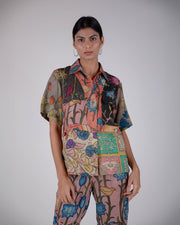 A truly utilitarian piece, the Tahera x Kate Convertible Shirt can be worn in multiple ways and will become one of the hardest working pieces in your wardrobe. The lower half of the shirt completely detaches so that you can wear the shirt cropped as well as regular length. Wear the shirt open over a tank top or if you button it up, try buttoning it to the top for extra impact. The Convertible Shirt that is crafted from authentic Kalamkari comes with the extra environmental benefit of using remnant fabric to patchwork the bold pocket details. Cut for a relaxed fit.