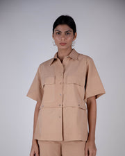 A truly utilitarian piece, the Tahera x Kate Convertible Shirt can be worn in multiple ways and will become one of the hardest working pieces in your wardrobe. The lower half of the shirt completely detaches so that you can wear the shirt cropped as well as regular length. Wear the shirt open over a tank top or if you button it up, try buttoning it to the top for extra impact. The Convertible Shirt is crafted from hand-loomed cotton making for a comfortable style choice. It is cut for a relaxed fit.