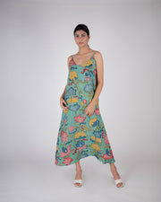 A timeless silhouette, the Tahera x Kate Slip Dress is cut from authentic Kalamkari. The style is kept simple to let the artisinal beauty of the fabric shine. The skirt of the dress follows an A-line shape for a relaxed and beautifully bohemian effect. Slips on.