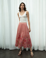 This beautiful skirt is stitched in 100% organic cotton, where simplicity meets sophistication. Designed in free-flowing silhouette that spell ‘relaxed’, comes in coral peach hue and finished with meticulously spider lily prints. Made for work or play all day long, this piece makes you chic and (eco) responsible at the same time.