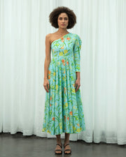 Step into tropical elegance with our one-shoulder Maxi Dress for a romantic, easily put-together look. Adorned with hand-painted depictions of Kaner flower, this dress has easy-going cuts with gathered details that will help you keep cool in style with their flowy fits and lightweight organic cotton fabric.