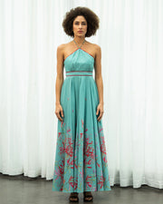 Combining feminine details with contemporary silhouette, this dreamy dress is created for a chic summer wardrobe, best worn to laidback lunches, and languid vacations at the beach. Celebrating the joys of a full, active life and the sun-kissed days, this organic cotton maxi dress comes with beautiful spider lily prints and tie-back halter neck style.