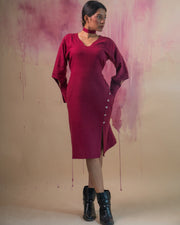 The rich maroon color enhances its allure, while a drawstring at the back cinches and accentuates your body curves, creating elegant gathers.