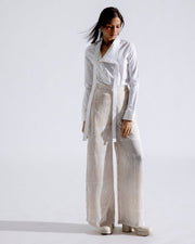 Introducing our Stripe Satin Kiah Pants, a chic and versatile addition to your wardrobe. These transseasonal pants are made in block printed modal satin and feature a straight fit with side zipper for a fit that flatters all shapes. Hand Crafted with meticulous attention to detail, they offer both comfort and fashion, making them the perfect choice for various occasions. Whether you're dressing them up for a work meeting or keeping them casual for everyday wear, our Beige Stripe Kiah Pants adds a modern twist, ensuring you have a stylish and adaptable piece.