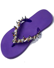 Hand-embellished by artisans on rubber flipflops collected from factories. Made in India.