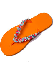 Hand-embellished by artisans on rubber flipflops collected from factories. Made in India.
