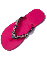 Hand-embellished by artisans on rubber flipflops collected from factories. Made in India.