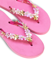 Hand-embellished by artisans on rubber flipflops collected from factories. Made in India.