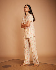 Lola short sleeve pyjama set is designed for lounging and living. Our signature pyjama shirt recreated with perfect short sleeves. Crafted in a delicate floral print, our organic cotton fabric is soft and has a beautiful hand feel. Afterhours Pyjama’s feature a smart shape and relaxed fit.