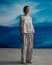 Introducing our exquisite hand-screen printed low-back blouse, a harmonious fusion of two captivating prints. Crafted for comfort with an elasticated back and a convenient hook opening, this blouse effortlessly complements sarees, skirts, or pants. The impeccable fit enhances your silhouette, adding a touch of sophistication to your ensemble. Elevate your style with our must-have low-back blouse, a statement piece that seamlessly marries distinctive design and chic practicality.