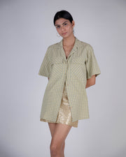 Part of Tahera x Kate's unisex selection, the short-sleeved Bowling Shirt features bold chest pockets and a notched collar. Tailored from hand loomed cotton for a relaxed fit and ultimate comfort. Wear it with matching Shorts or glam it up with the Sequinned Mini Skirt.