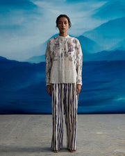 Introducing a captivating variation of the dolman shirt, this version is crafted from printed Chanderi fabric, featuring intricate pintuck details and delicate lace accents. The unique blend of these elements adds a touch of refined elegance. Versatile and well-suited for all occasions, this piece effortlessly combines style and comfort, allowing you to showcase its charm with confidence in any setting.
