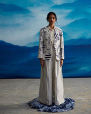 This classic silhouette effortlessly blends strength and elegance, offering a relaxed style. Crafted from lightweight Chanderi, it boasts a luxurious feel against the skin. Elevate your wardrobe with this environmentally conscious piece, where sustainability meets timeless style.