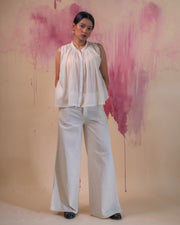 Crafted in 100% cotton fibers and natural materials. The sheer and weightless texture of the light Mul Mul fabric allows the delicate gathers to cascade gracefully around the yoke, creating a visual symphony of style. The hidden placket & mandarin collar is accentuated with stitches of Kantha, a form of Indian hand embroidery.