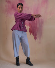Crafted from 100% cotton fibers and natural materials. This Kala Cotton Ruched Blouse comes in a calm and soothing colour that we call Grape Harvest naturally dyed from a host of ingredients ranging from madder root to indigo.