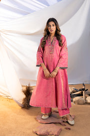 Pink Handloom Cotton Zari Tissue Embroidered Kurta Set