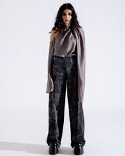 Introducing our Steel Grunge Denim Pant. Crafted in hand-textured washed denim, and hand-roller black print on the sides these pants offer a modern fresh take on classic denim styling. They're perfect for casual days and dressing up for a night out. Our Steely Grunge Denim Pants are a styling staple that can be paired with any piece for any occasion. The hand-textured wash denim textile adds an edge to the outfit, elevating it from a basic to a statement.