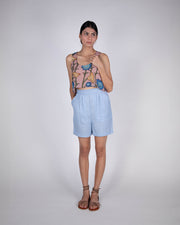 Tahera x Kate's lightly tailored shorts are equal parts smart and comfortable. The pleats, elasticated back and cotton blend fabrication give an easy fit. For a Summer suit wear it with the coordinating Blazer.