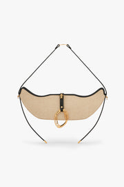 The flirtatious charisma of a high-fashion top handle crowned with the iconic OH monogram, while structured straps extend to the base, lending an architectural allure. Lined in 100% canvas, it features a card case and zip closure. Handcrafted from textured canvas of 100% natural jute paired with supple, grainy black vegan leather, The Boss Swing redefines the east-west silhouette with its sculptural, boat-like form — a dramatic yet restrained statement that flows seamlessly from handle to handle and the subtle gold drip accents add a touch of drama. Anchored by the Sculptural OH Boss Link — bold, bulbous and audacious, enveloped in 22k gold.