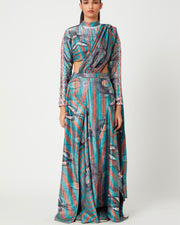 Pleated Crop Top with Modular Panel Double Slit Skirt
