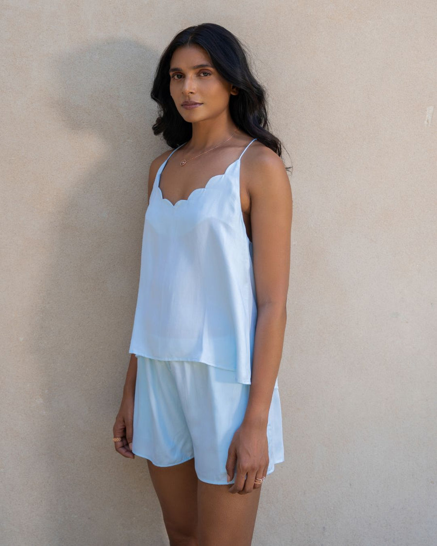 Experience serene comfort with our Bit of Blue Camisole Top. Made from premium modal fabric, it caresses your skin with a gentle touch. The subtle blue hue adds a hint of tranquility to your loungewear collection. Whether lounging or sleeping, indulge in luxurious relaxation with this essential camisole top.