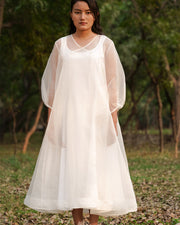 Cafted in 100% silk organza, this mesmerizing statement piece feels beautiful to wear and gently drapes to float effortlessly as you walk. The cotton slip with heavenly floral handpainting by resist batik will have you fealing like an otherworldly enchantress. Beautifully finished with overlapping panels, swish your way to everyday glamour in this stunning design, with something new to love at every angle.